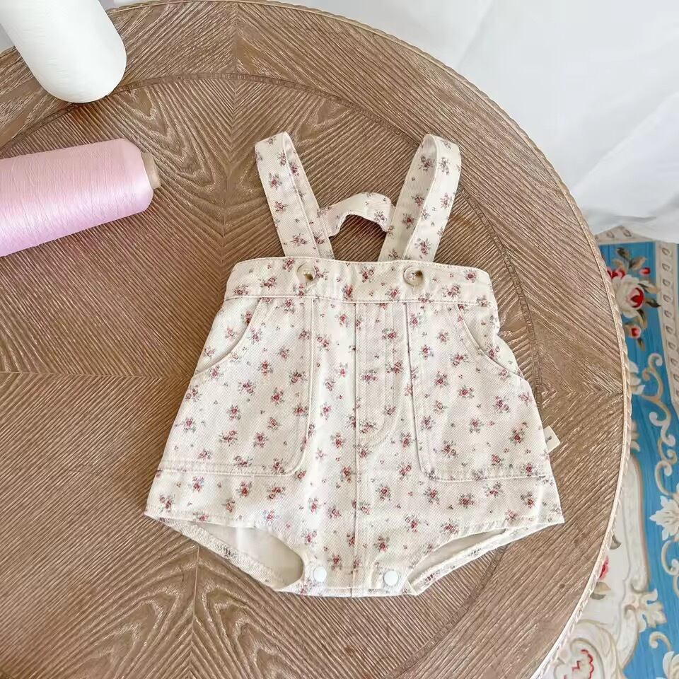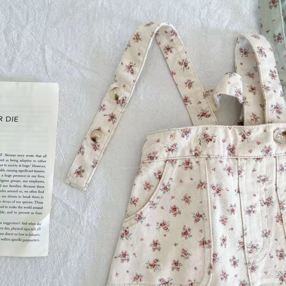 小花柄デニムオーバーオール